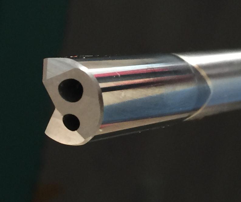 針對(duì)以上加工特性,現(xiàn)在市場(chǎng)上小直徑的槍鉆采用整體鎢鋼刀柄,大大提高了刀具的剛性,對(duì)于抗粘附性則采用切削合金部分涂層處理,通過涂層,大大提高刀具的耐磨性,抗粘附性。